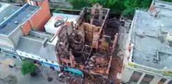 Drone footage showing the extent of the damage at Victoria Buildings and its collapse