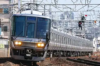 The 223 series (223系, 223-kei) is a suburban electric multiple unit (EMU) train type operated by the West Japan Railway Company (JR-West) in the Kansai region, Chūgoku region and Shikoku region of Japan. Multiple batches of the model have been built with varying differences (particularly motor output control), although the overall general appearance remains similar.