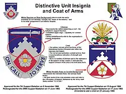 Background: The distinctive unit insignia was originally approved for the 7th Support Battalion on 8 November 1966. It was redesignated for the 299th Support Battalion on 17 June 1983.