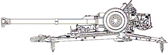 Self-propelled towed gun variant that can move under its own power with the addition of wheels and a power unit.