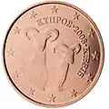 | Two Mouflons, a species of wild sheep on Cyprus that represents the island's wildlife. It includes, in a semicircle to the top right, the name of Cyprus in Greek and Turkish (ΚΥΠΡΟΣ and KIBRIS) each side of the date. | 2008–onward |