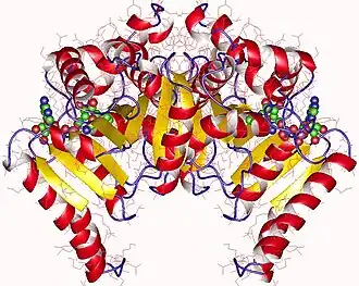 ![]() (S)-3-hydroxybutyryl-CoA dehydrogenase homodimer, Cupriavidus necator | |||||||||