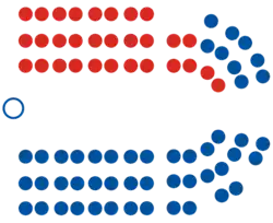 The 1951 election saw the governing National Party re-elected with a twenty-seat margin, a substantial improvement on the twelve-seat margin it previously held. National won fifty seats compared with the Labour Party's thirty.[5] The popular vote was closer, however, with National winning 54% to Labour's 46%.[6] No seats were won by minor party candidates or by independents.[7] This was the last New Zealand general election in which any party has ever captured a majority of the popular vote.[6] Key