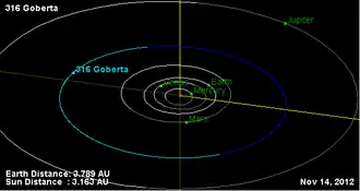 - ^ a b c Yeomans, Donald K., "316 Goberta", JPL Small-Body Database Browser, NASA Jet Propulsion Laboratory, archived from the original on 16 August 2019, retrieved 11 May 2016.