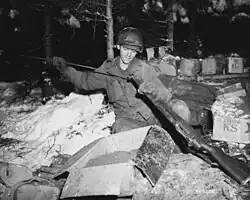 The 327th Infantry Regiment (Bastogne Bulldogs)[1] is an infantry regiment of the 101st Airborne Division (Air Assault) of the United States Army. During World War II, the 327th was a glider-borne regiment of the 101st Airborne Division. It fought during World War I as part of the 82nd Division. It has also been deployed in the Vietnam War, Gulf War, and most recently to Iraq and Afghanistan. The song "Glider Rider" describes (humorously) some of the slights that glider-borne troops felt they received from the Army during World War II; though the regiment's public fame rose with the 1949 movie Battleground about the Siege of Bastogne in late 1944.