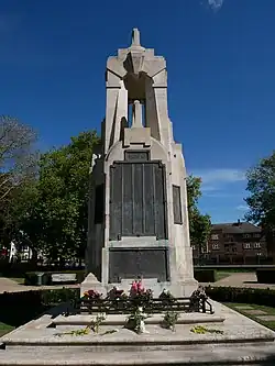 The south-west face of the war memorial cenotaph in Central Park, East Ham, carries a plaque to the men of 32nd (Service) Battalion, Royal Fusiliers (East Ham) who died during the war.[61]