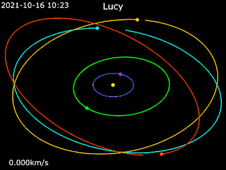 Lucy ·    Sun ·    Earth ·    52246 Donaldjohanson  ·   3548 Eurybates ·    21900 Orus ·    617 Patroclus