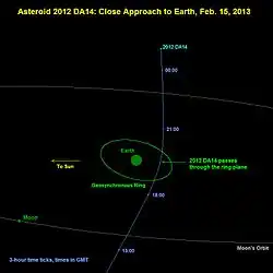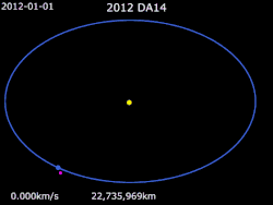 - ^ a b c d Paul Chodas & Don Yeomans (1 February 2013). "Asteroid 2012 DA14 To Pass Very Close to the Earth on February 15, 2013". NASA/JPL Near-Earth Object Program Office. Retrieved 1 February 2013.