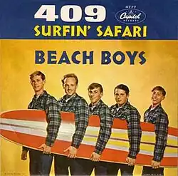 "409" is a song written by Brian Wilson, Mike Love, and Gary Usher for the American rock and roll band the Beach Boys. The song features Love singing lead vocals. It was originally released as the B-side of the single "Surfin' Safari" (1962).[4] It was later released on their 1962 album Surfin' Safari, and appeared again on their 1963 album Little Deuce Coupe.