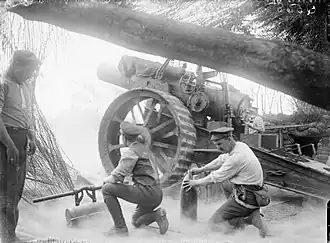 - ^ At this stage of the war the 8-inch howitzers in use (Marks I–V) were improvised from cut-down and bored-out barrels of 6-inch coast defence guns, with the recoil checked by enormous wooden wedges.[12][13]