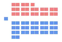 Rendition of party representation in the 48th New Brunswick Legislative Assembly following the 1974 election.