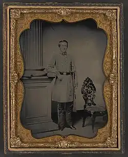 The 4th North Carolina Infantry Regiment was a Confederate States Army regiment during the American Civil War, active from 1861 until the war's end in April 1865. Ordered to Virginia, the unit served in General Winfield S. Featherston’s, George B. Anderson’s, Stephen D. Ramseur’s, and William R. Cox’s Brigade. Its field officers were Colonels George B. Anderson, Bryan Grimes, Edwin A. Osborne, and James H. Wood; Lieutenant Colonels David M. Carter and John A. Young; and Majors Edward S. Marsh and Absalom K. Simonton.[1] It was nicknamed "The Bloody Fourth" after the high rate of casualties at the Battle of Seven Pines.