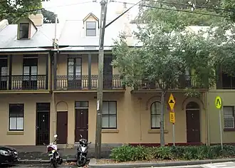 This Wikipedia article was originally based on Terrace, entry number 871 in the New South Wales State Heritage Register published by the State of New South Wales (Department of Planning and Environment) 2018 under CC-BY 4.0 licence, accessed on {{{accessdate}}}.