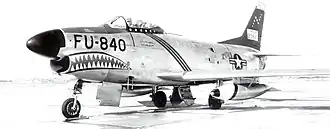 1. ^ Taken at Geiger Field in February 1955. Aircraft is North American F-86D-40-NA Sabre, serial 52-3840. This aircraft served until August 1960. It is on display at Lookout Mountain, Tennessee. Baugher, Joe (7 April 2023). "1953 USAF Serial Numbers". Joe Baugher. Retrieved 11 April 2023.