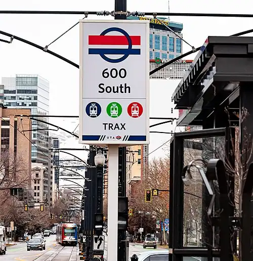 600 South is a light rail station in Downtown Salt Lake City, Utah, United States, served by all three lines of Utah Transit Authority's TRAX light rail system. The Blue Line provides service from Downtown Salt Lake City to Draper. The Red Line provides service from the University of Utah to the Daybreak community of South Jordan. The Green Line provides service from the Salt Lake City International Airport to West Valley City (via Downtown Salt Lake City). The station opened on July 26, 2022, and is operated by the Utah Transit Authority.[2]