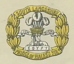 In January 1900, the 2nd VB, commanded by Col W.W. Pilkington, offered to send volunteers to reinforce the 1st Battalion South Lancashires fighting in the 2nd Boer War. Between them the two Volunteer battalions raised a service company which, after a short period training at Orford Barracks, Warrington, was sent out and joined the Regulars at Ladysmith on 29 March 1900. It took part in all the 1st Bn's operations up to the occupation of Vryheid, and then went back to Ladysmith for garrison duties until it returned to England in May 1901. It was followed by three further contingents to serve with the 1st Bn, as well as numerous individuals from the Volunteer battalion serving with the Imperial Yeomanry, the Mounted Infantry, the South African Constabulary and various non-combatant corps.[9]