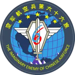 The 66th Air Brigade has been described as a "full-time ace" unit comprising the most skilled pilots in the PLAAF including a number of Golden Helmet awardees. The unit researches and studies adversary use of fighter aircraft, rotorcraft, and electronic warfare for use in training against PLAAF units.[3] Certain tactics reported to be employed by the 66th Brigade including electromagnetic attacks to interfere with PLAAF aircraft and traversing valleys near ground-level before kicking up to target air defense positions in exercises such as Firepower in Shandan, to the alleged shock of PLAAF air defense units.[3][4] Although its patch suggests the United States is the PLAAF's primary adversary, the brigade has also played the role of adversarial air forces from Taiwan, Indochina, and India.[4]