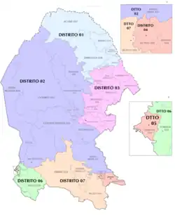 It elects one deputy to the lower house of Congress for each three-year legislative session by means of the first-past-the-post system. Votes cast in the district also count towards the calculation of proportional representation ("plurinominal") deputies elected from the second region.[2][3]