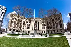 In 1933, mayor Henry Worley announced a plan to consolidate city offices, all to be within either City Hall or the Central Police Station. The moves would cut expenses during the Great Depression, moving the municipal court into the police building.[12] In the following year, the Columbus Fire Department also announced it was moving its headquarters into the police station building. The county relief commission was moving out of the first floor space, where fire department records and office space would replace them. Mechanical equipment, including fire engines, would remain at Engine House No. 1 at Front and Elm streets.[13]
