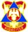 • Symbolism: The white alerion on scarlet is from the arms of Lorraine Province in France where the organization served in three World War I campaigns. In World War II, the unit participated in the Ardennes-Alsace, Rhineland and Central Europe campaigns indicated by the three points, in the color blue for Infantry and for the area of the Rhine River. The white flashes and the red of the scroll allude to the Division shoulder sleeve insignia.