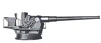 The 8-inch Navy gun Mk.VI M3A2 on railway mount M1A1 was a World War II improved replacement for the World War I-era 8-inch (203 mm) M1888 gun and was used by the US Army's Coast Artillery Corps in US harbor defenses. The guns were also mounted in fixed emplacements on the barbette carriage M1A1.[1] These guns were US Navy surplus 8"/45 caliber guns from battleships scrapped under the 1922 Washington Naval Treaty. Mark VI (also Mark 6) was the Navy designation. The Army designation for this gun was "8-inch Navy gun Mk.VI M3A2".[1]