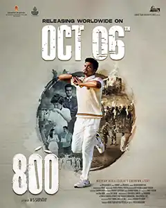 800 is a 2023 Indian Tamil-language biographical sports film based on the life and career of Sri Lankan international cricketer Muttiah Muralitharan, the highest wicket-taker in the history of cricket.[2] The film is directed by M. S. Sripathy, written by him and Shehan Karunatilaka, produced by Movie Train Motion Pictures and Vivek Rangachari, and presented by Sridevi Movies, Sivalenka Krishna Prasad.[3] It stars Madhur Mittal as Muralitharan.[4][5]
