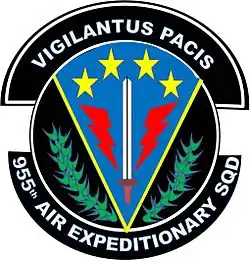 The 955th Air Expeditionary Squadron of the United States Air Force performed Operational and Administrative Control (OPCON/ADCON) of Joint Expeditionary Tasking and Individual Augmentee (JET/IA) Airmen in Afghanistan. The squadron is assigned to the 405th Air Expeditionary Group.[1]
