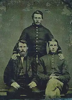 Private William Slack (standing) and Private John Slack (sitting, right), 98th New York Infantry. Both born in North Dundas, Ontario and both wounded at Cold Harbor in 1864. William Slack died of his wounds.