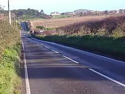 The road now rises away from the marshes and twists and turns into the next village of Kelling. The road now passes through the gentle and heaths of Kelling Heath and Weybourne. Just before entering the village of Weybourne, the road passes Weybourne Camp on the left. The road now passes through the village of Weybourne (45.5 miles (73.2 km)) and up a hill past the village Windmill.