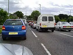It is a junction which is noted for being subject to very high vehicle flows (in 2008, 73000 vehicles per day entered the roundabout)[8] and as a result can be subject to long queues at peak times. Various upgrades have been made to the junction since its construction in an effort to increase capacity; it now has four lanes on the A381 approach and northern section of the roundabout. The Kingskerswell bypass completed in December 2015 has a single carriageway flyover north–south so that through traffic on the A380 dual carriageway does not have to negotiate the junction.