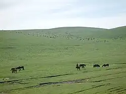 | Inner Mongolia | Ordos | Mausoleum of Genghis Khan | 2011 | A 225 km2[74] area surrounding a compound of 4 buildings[74] constructed between 1954 and 1956[75][76] to house relics used in the veneration of Genghis Khan, Tolui, and their wives since the Yuan, repurposed as a salt depot in 1968,[77] restored in the early 1980s,[75] and now the world center of Genghis Khan's cult,[77] despite having only replicas[78] after its desecration during the Cultural Revolution.[75] The site also includes an expansive prairie, an equestrian sports center, a hot air balloon area, and a village showcasing traditional Mongolian culture.[79] | ![]() |
