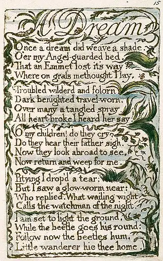 An 1826 version of "A Dream" from Copy AA of Songs of Innocence and of Experience currently held at The Fitzwilliam Museum.[4]