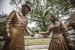 A Gathering at the Crossroads is an African American monument on the southern end of the Pennsylvania State Capitol Complex in Harrisburg, Pennsylvania.[1] Officially dedicated in 2020 to commemorate the 100 and 150-year anniversaries of the passing of the Fifteenth Amendment and Nineteenth Amendment, the monument celebrates the power of the vote and commemorates the historic African American community in Harrisburg and the wider Commonwealth of Pennsylvania between 1850 and 1920.