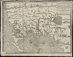 - ^ "A Map of New-England, Being the first that ever was here cut, and done by the best Pattern that could be had, which being in some places defective, it made the other less exat: yet dourth it sufficiently shew the Scituation of the Country and conveniently well the distance of Places. . . – Barry Lawrence Ruderman Antique Maps Inc". www.raremaps.com. Retrieved March 4, 2023.