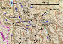 The Elk Summit Work Center is located at the junction of Horse Creek and Hoodoo Creek, north-northwest of Hoodoo Mountain and north-northeast of Hoodoo Lake, at 46°19′36″N 114°38′51″W / 46.32667°N 114.64750°W (46.3265874, −114.6476053)[6] and an elevation of 5,748 feet (1,752 m).