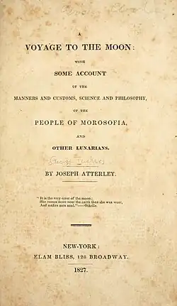 - ^ a b c "Atterley's Voyage to the Moon". Western Monthly Review. Vol. I, no. 11. March 1828. pp. 674–684.