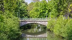 There is a walking route, the "two rivers route", and sports equipment along the banks of the river. The river borders the Aar Park, which has allotment gardens and the sports complex.[2] The river flows through a calm, green landscape, and is used by coypus and birds such as kingfishers, herons, cormorants, swans, coots and moorhens. There are old wash-houses along the bank. The river is used for canoeing and kayaking.[3]