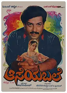 Aaseya Bale (ⓘ) is a 1987 Indian Kannada drama film, directed by Raj Kishor. The film featured Vishnuvardhan, Nalini and Jai Jagadish in pivotal roles.[1] The music was composed by Vijaya Bhaskar, to the lyrics of Chi. Udaya Shankar and R. N. Jayagopal.
