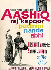 Aashiq is a 1962 Hindi movie directed by Hrishikesh Mukherjee. The film stars Raj Kapoor, Nanda, Padmini, Keshto Mukherjee and Leela Chitnis. The music of film was composed by Shankar Jaikishan.