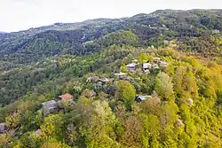 Abanoeti (Georgian: აბანოეთი), formerly also known as Mikartsminda (მიქარწმინდა), is a village in Georgia’s northern Ambrolauri Municipality (Racha-Lechkhumi and Kvemo Svaneti region) with a population 102 (2014).[1] It is located about 11 kilometres (6.8 mi) west of the municipal center Ambrolauri, at an elevation of 820 metres (2,690 ft) above sea level on a hill overlooking the Rioni River. It is part of the Bugeuli administrative community (თემი, temi) that includes 5 more nearby villages.[2]