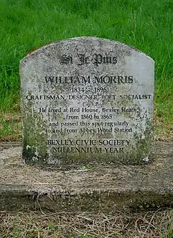William Morris lived at the nearby Red House, in Bexleyheath, a house which was built for him by the architect Philip Webb.[22] Morris regularly walked to Abbey Wood station, and a plaque just off Knee Hill commemorates this association.