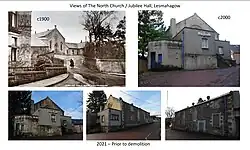 Following communication of the decisions of the first Presbytery meeting, the North Church congregation decided to hear the Rev. John Milwain,[85][46] a preacher from the nearby Reformed Presbyterian Church at Ponfeigh,[35][86][87][88] near Douglas Water,[89] on the Sabbath day (Sunday) the Free Church had chosen to preach it vacant. The North Church session and congregation called Rev. Milwain, and on his acceptance of the call the North Church transferred (both property and congregation) to the Reformed Presbyterian Church with a portion of the congregation choosing to unite with Lesmahagow Free Church.[90][46][91] The transfer was completed on 4 March 1844 and the ministry was shared between Ponfeigh and Lesmahagow North Church for a time until moderation was granted on 28 April 1845. On 10 August 1846, Rev. McMeekin (or Macmeeken) was called as minister to the North church and ordained on 30 December 1846.[92] However, due to financial difficulty, the North Church congregation was dissolved in 1869[46] and therefore did not survive to the time when a majority of the Reformed Presbyterian Church united with the Free Church of Scotland in 1876. Subsequently, the church building was modified and became the village hall, and from 1887, the Jubilee Hall,[93] at the celebration of the Golden Jubilee of Queen Victoria. The building was demolished to make way for a house, which was built in late August 2021.