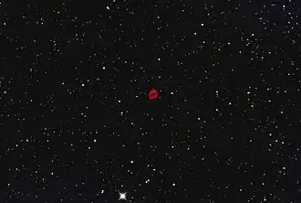 Abell 48 is a planetary nebula likely located around 14,000 light years away[1] in the constellation of Aquila. It is noteworthy among planetary nebulae for hosting a rare WN-type Wolf-Rayet-type central star, a [WN4]-type star, which was once thought to be a bona-fide Wolf-Rayet star,[4] and received the name WR 120–6.[5] The nebula is made up of two rings surrounding the central star, and is heavily reddened, with an E(B-V) value of 2.14 and a visual extinction of 6.634 magnitudes, which is why it appears so dim.[6]