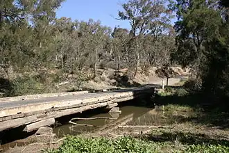 Alluvial gold was discovered in and along the river in 1851, inspiring a minor gold rush hampered by the ruggedness of the terrain and the periodic depths of the waterway.[5] Early miners recovered up to 3 oz (85 g) of gold a day along the river,[6] and by 1862 between forty and fifty mining parties were at work at Milburne Creek, a minor tributary of the Abercrombie.[7]