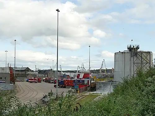 Aberdeen Waterloo station opened on 1 April 1856[1] to serve the Great North of Scotland Railway main line to Keith. It was located on Waterloo Quay in the city centre. It closed to passengers in 1867[1] once Aberdeen Joint opened, but the track remains in use as a freight siding for the docks. The goods sheds were demolished in the 1960s, while the main station was converted for use as a storage facility.[2]