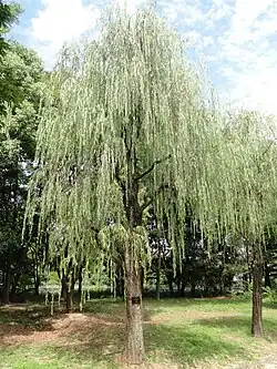 One such tree reportedly grew next to Arlington National Cemetery near the northern end of George Washington Parke Custis' mansion, Arlington House.[5][31] Another reportedly grew from a slip of the Abingdon willow that American General Horatio Gates had planted at the entrance to his Rose Hill Farm in Manhattan. That tree, which became known as "Gates's Willow", grew at a site that became the corner of Third Avenue and 22nd Street. The tree was reportedly cut down in 1860.[5]