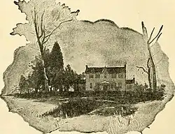 In 1896, the Washington, Alexandria and Mount Vernon Railway began to run electric trolleys beside the abandoned Alexandria Canal west of Abingdon.[55][56] By 1902, the railway was distributing a booklet for tourists that described Abingdon and other historic sites along its route.[57] The booklet illustrated a house at Abingdon (identified as the "birth-place of Nellie Custis") that reportedly stood on the bank of Potomac River, a mile east of the railway's tracks beyond a brickyard.[58]