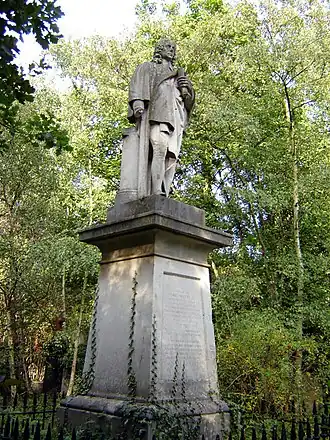 Close to Church Street is the burial of one of the cemetery's early director and trustees, one of the first two Members of Parliament for Hackney Sir Charles Reed.[20] Close by lies his father Dr Andrew Reed (1788–1862), a student of Rev. George Collison and founder of the London Orphan Asylum. In 1834, along with the Rev. J. Matheson, Andrew Reed was sent to the Congregational Churches of America by the Congregational Union of England and Wales as a deputation to promote peace and friendship between the two communities. He spent six months in America and during his stay there Yale University conferred upon him an honorary Doctorate of Divinity. This strengthened the Congregationalists' transatlantic links, ensuring the Rev George Collison's son a welcome when he visited to gain ideas for Abney Park cemetery's design from Mount Auburn Cemetery.