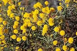 • Acacia chapmanii subsp. australis R.S.Cowan & Maslin[7] has stipules that are not spiny, phyllodes subterete to flat, and directed upwards, the ends gently turned downwards, heads with 24 to 27 flowers and flowering in August and September.[8][9]