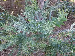 Its bright flowers and attractive leaves make Acacia cultriformis one of the most popular wattles in cultivation. Adaptable to the garden, it is grown in a wide range of soils and can tolerate frosts. It grows in sun or part shade.[12] Drought tolerant, it can be used to combat soil erosion.[11] Acacia 'Cascade' (RN: ACC154) is a prostrate form that spreads to a diameter of 2 m (7 ft). It was registered on 18 November 1982, having been propagated by Bill Molyneux at his nursery in Montrose, Victoria from a selected seedling.[13] It makes an attractive cascading plant in a rockery.[12]